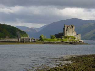Editors Note: Family connection to the Eilean Donan Castle of Wester Ross, Scotland (shown above) is unknown but it's a lovely scene, isn't it? Click on it for a short history. The picture at the right was taken by Geoffrey Donnan (webmaster) in 2002 during a trip to Scotland and the castle. To download a full sized picture to print out or for a screensaver on your computer, click here (412 KB). To download a lower quality version, click here (98KB). For information on how to reach the Eilean Donan Castle, click here